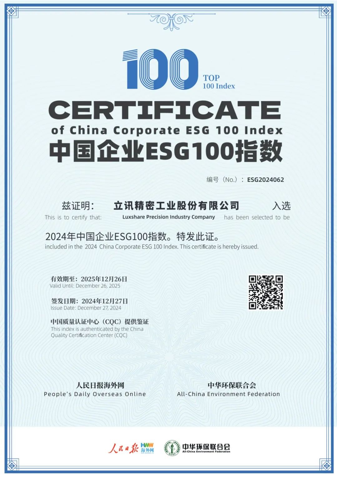 权威宣布,,,,,,,pa集团官网入口细密入选“2024中国企业ESG100指数”